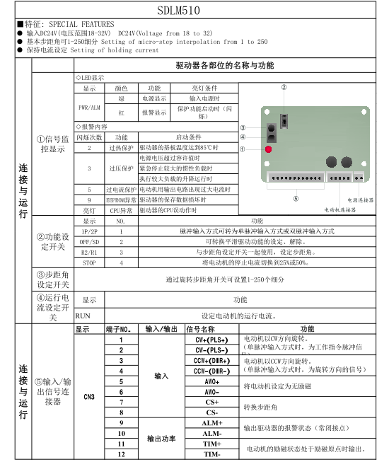 产品名称:SDLM510低压五相步进驱动器