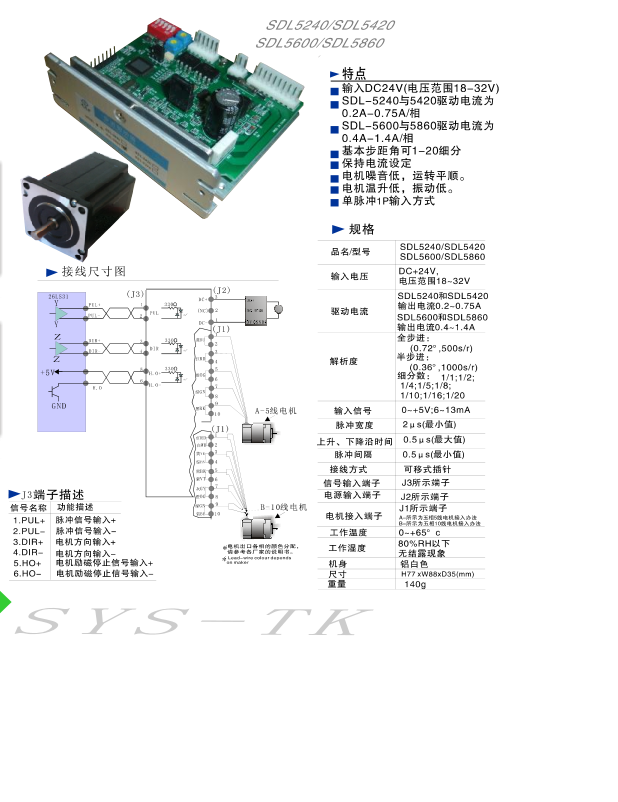产品名称:SDL5XX0系列低压五相步进驱动器