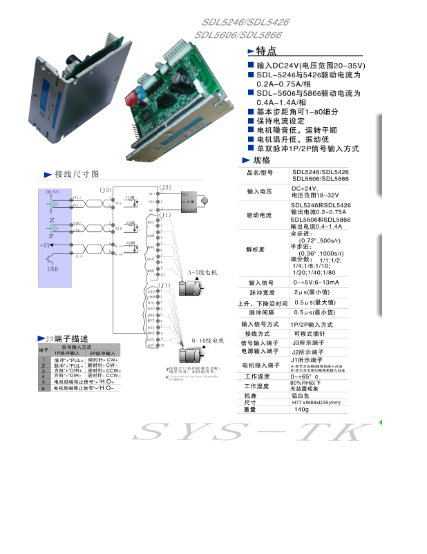 产品名称:SDL5XX6系列低压五相步进驱动器